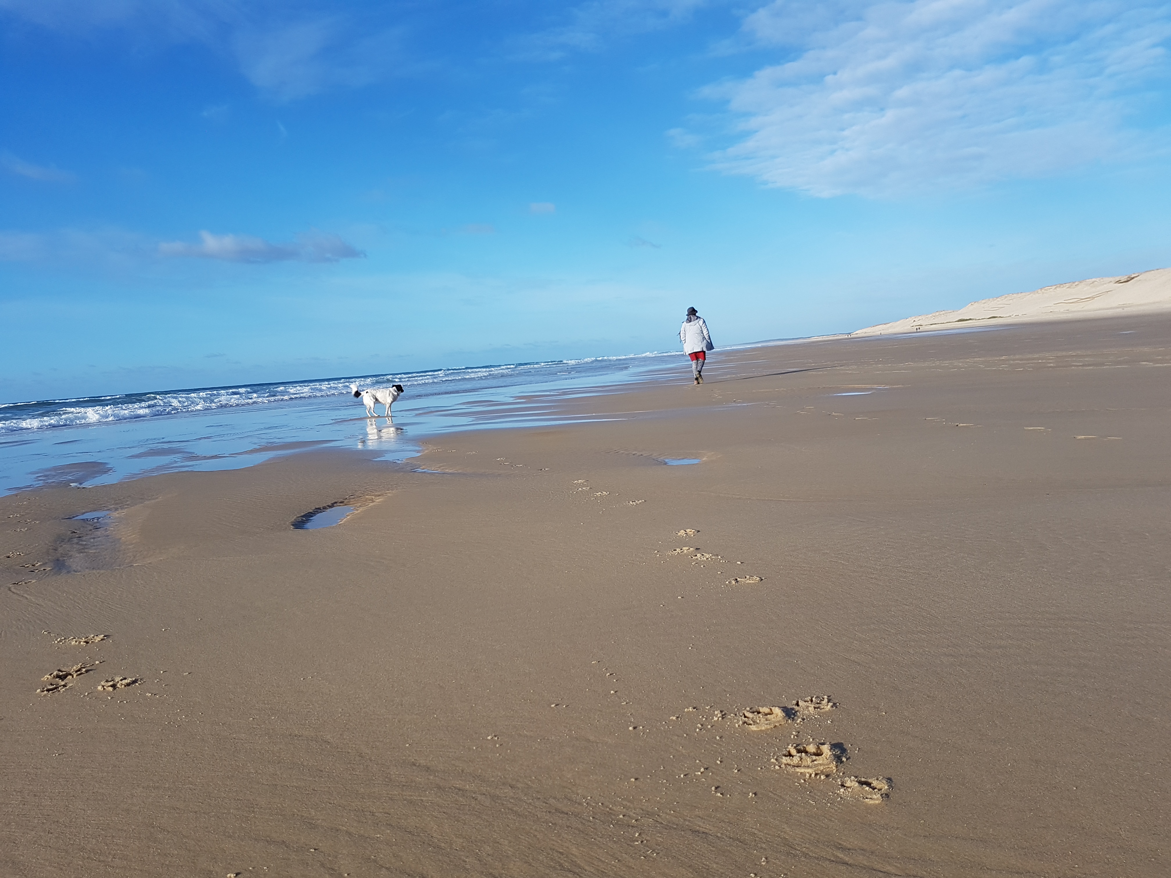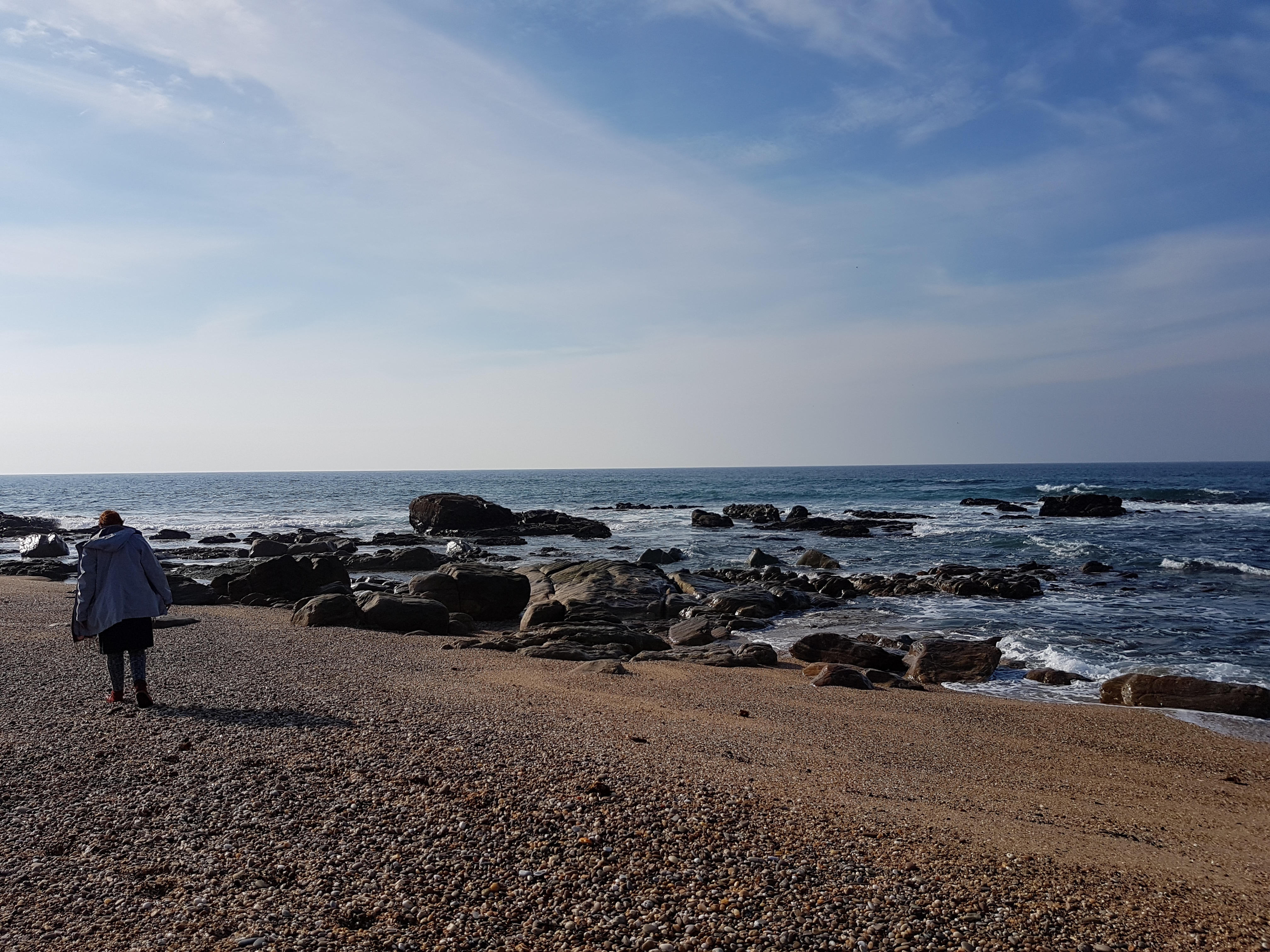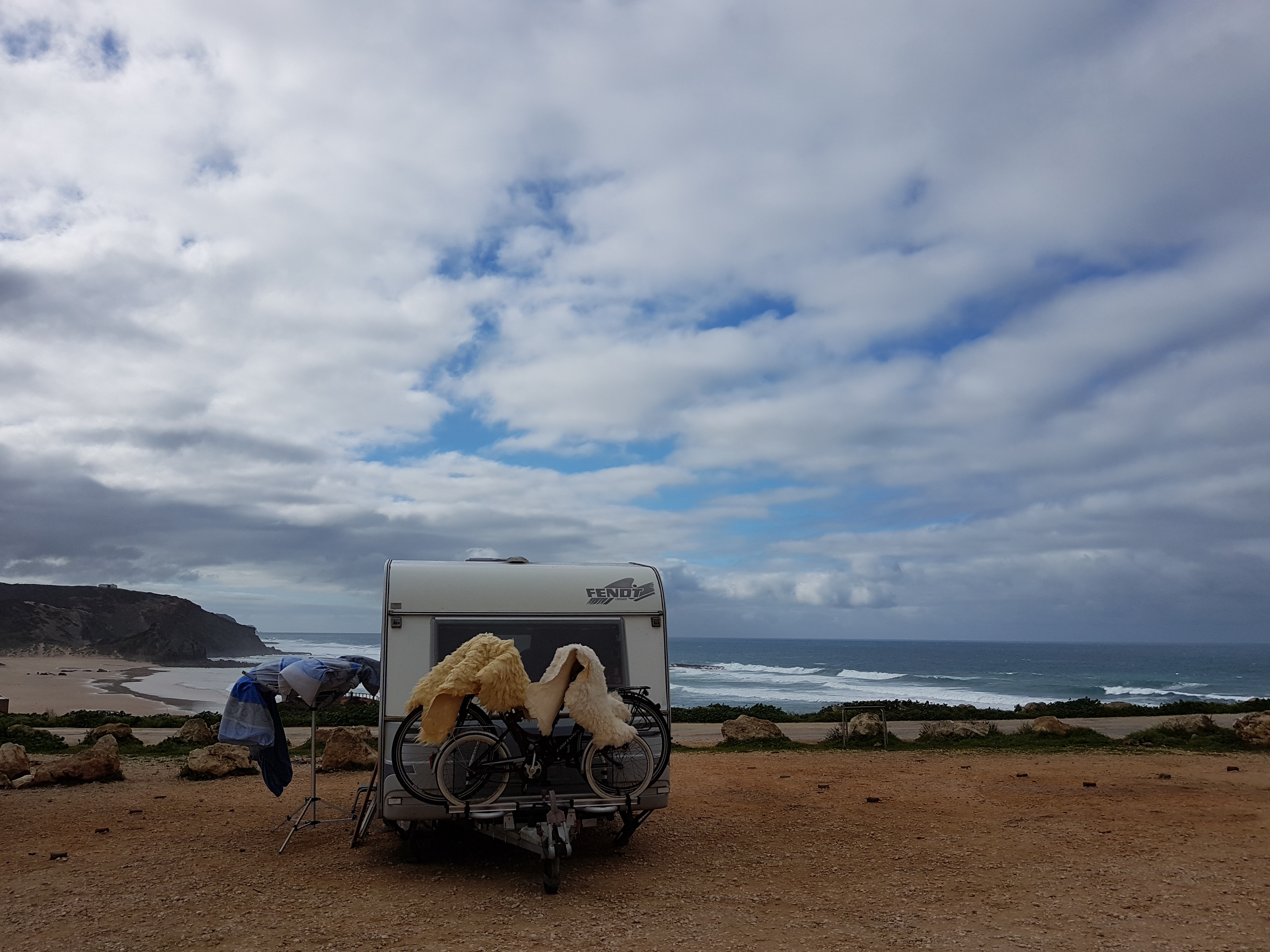 Jetzt nach fast 3500km unterwegs sind wir hier angekommen und es ist einer der Orte der phantasievolle Sehnsüchte real zu übertreffen vermag. Natürlich hat man Sehnsuchtsorte selten für sich allein aber sie lassen sich auch schön teilen und gewinnen dadurch. Der Ort bietet genug Platz für Sinnsuchende, Surferinnen, Poeten, Pensionierte, die zu Vagabunden werden, allein oder als Paar und Verliebte auch allein oder als Paar. Für morgen sind 20 Grad angesagt. Hier wollen wir mindestens den Rest des für uns meist so kalten Januars bleiben. Wir müssen nicht mehr heizen und genießen die Sonne, die Wellen und die Farben.