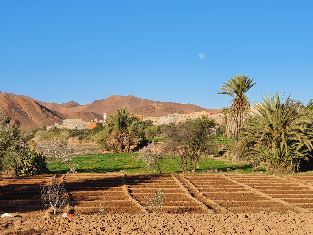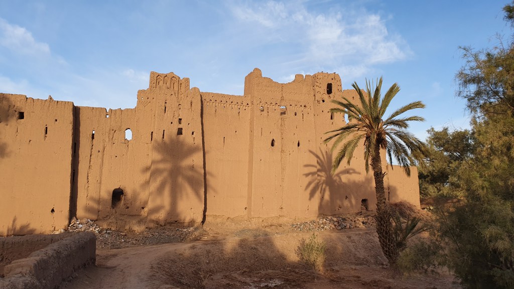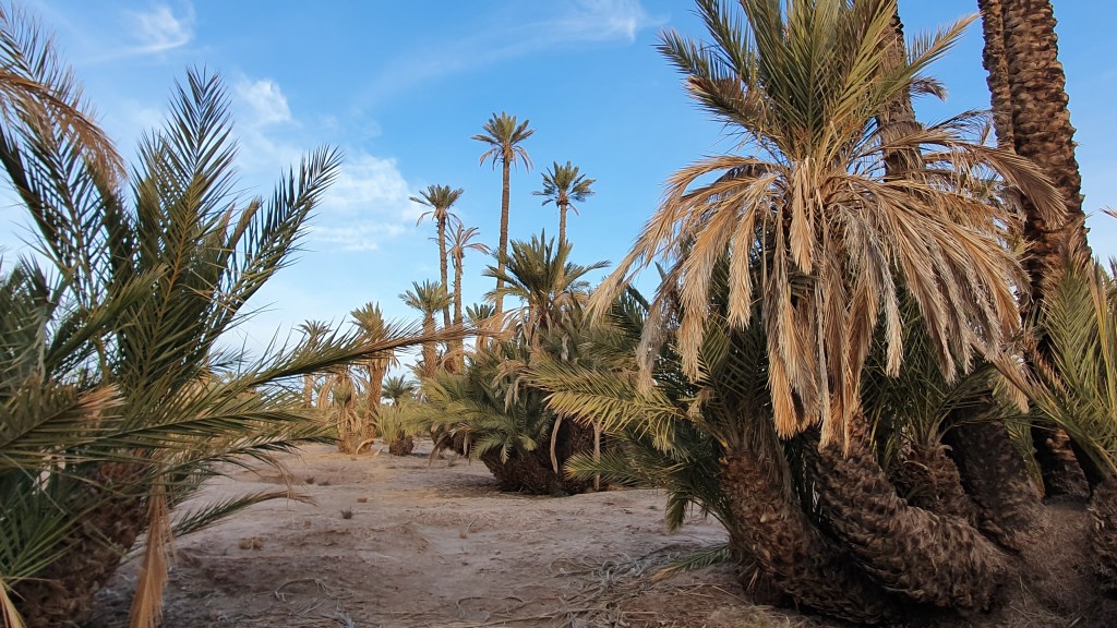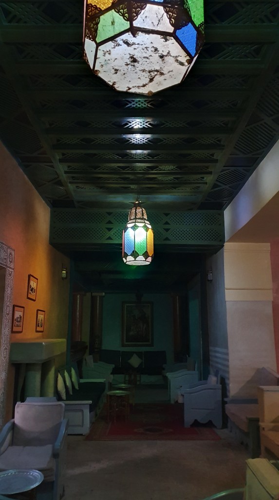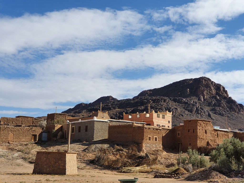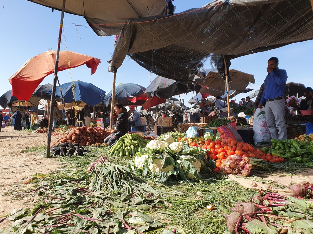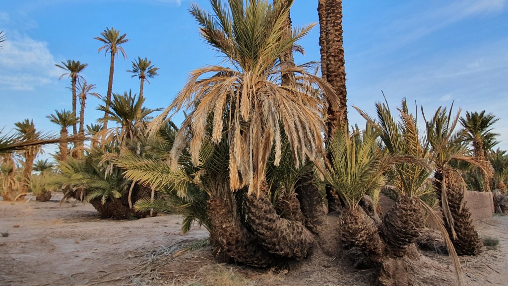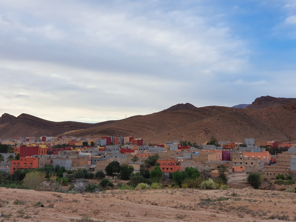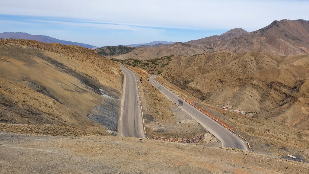 Ouarzazate ist die Filmmetropole von Marokko. Viele große Filme mit Wüstenatmosphäre sind hier entstanden. Gladiator, Laurence von Arabien u.a.. Ouarzazate ist durch die Filmbranche und die Atlas Studios die am schnellsten wachsende Stadt südlich des Atlasgebirges. Von Ouarzazate geht die Straße nach Norden über den Hohen Atlas. Auf der anderen Seite liegt Marrakesch. Es sind 180 km Entfernung aber wir brauchen letztlich 7 Stunden dafür. Die Nationalstraße soll gut ausgebaut sein aber wir hören das sie vor einigen Tagen gesperrt war. Auf unserer Fahrt gibt es andauernd Baustellen und wir fahren viele Kilometer auf Lehmpisten und werden kräftig durchgerüttelt. Es hat wohl Steinlawienen gegeben. Die Leitplanken sind teilweise verbogen oder weggerissen. Die Straße zur Abhangseite weggebrochen. Die Landschaft ist atemberaubend schön und bietet wunderschöne Farben an den Felshängen. Beinahe greifbar sind die Schneefelder auf 2260 m Passhöhe des Tiz’n’Tickla. Gegen Abend erreichen wir das Ourika Camp am Stadtrand von Marrakesch und blicken von unten auf die schneebedeckten Gipfel des Atlas. Fotos sind nicht so viele entstanden und eher in den entspannten Situationen.