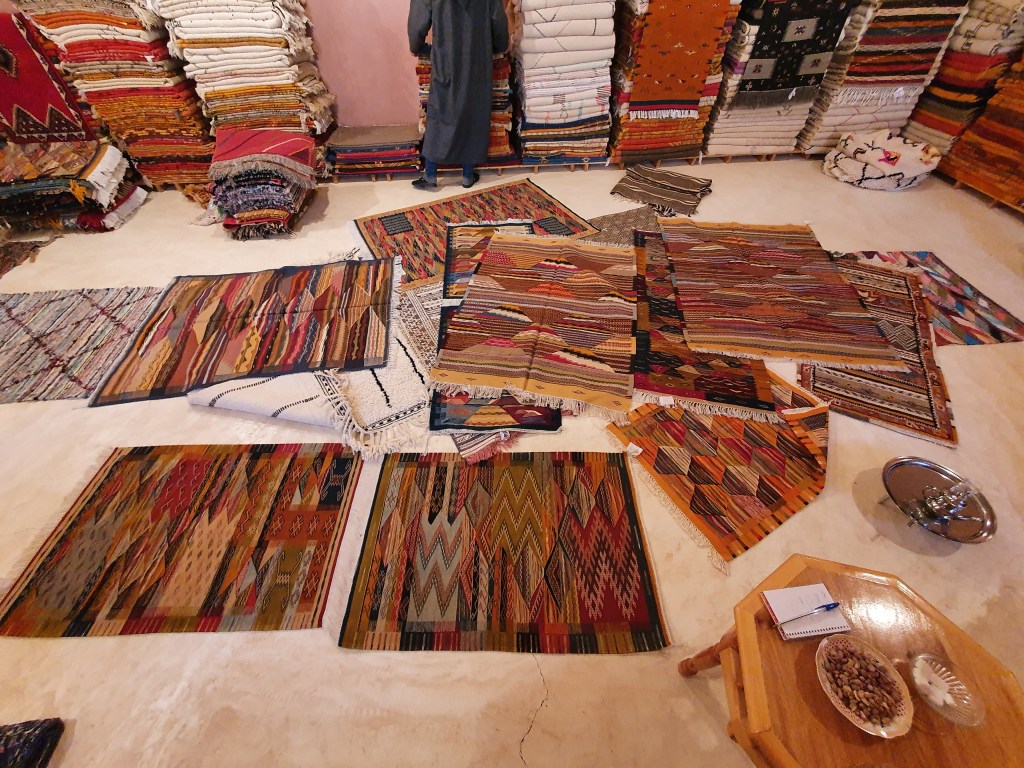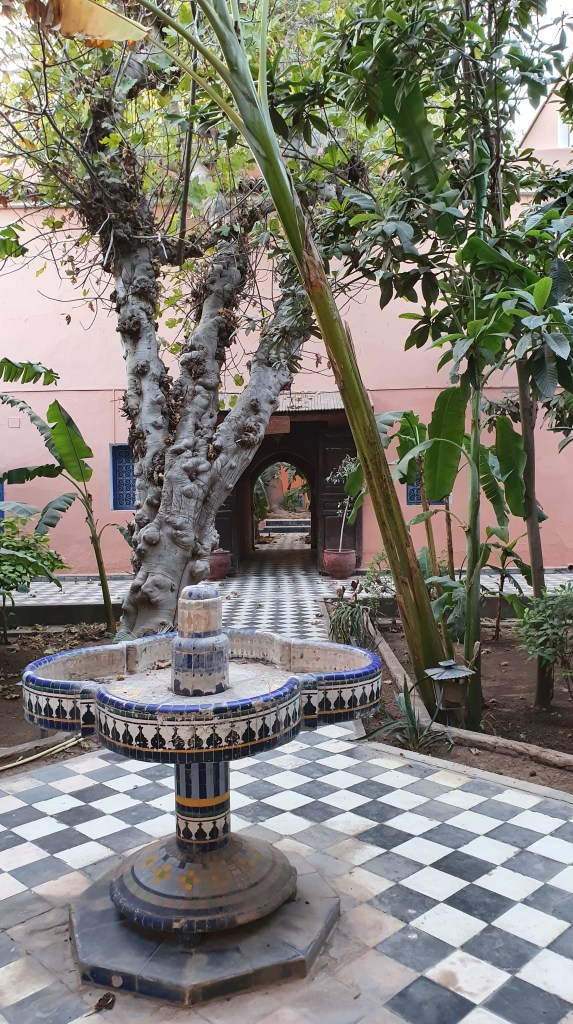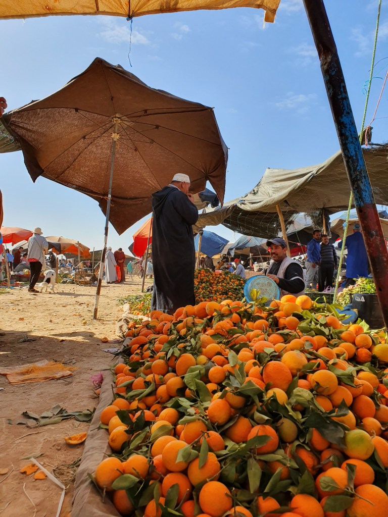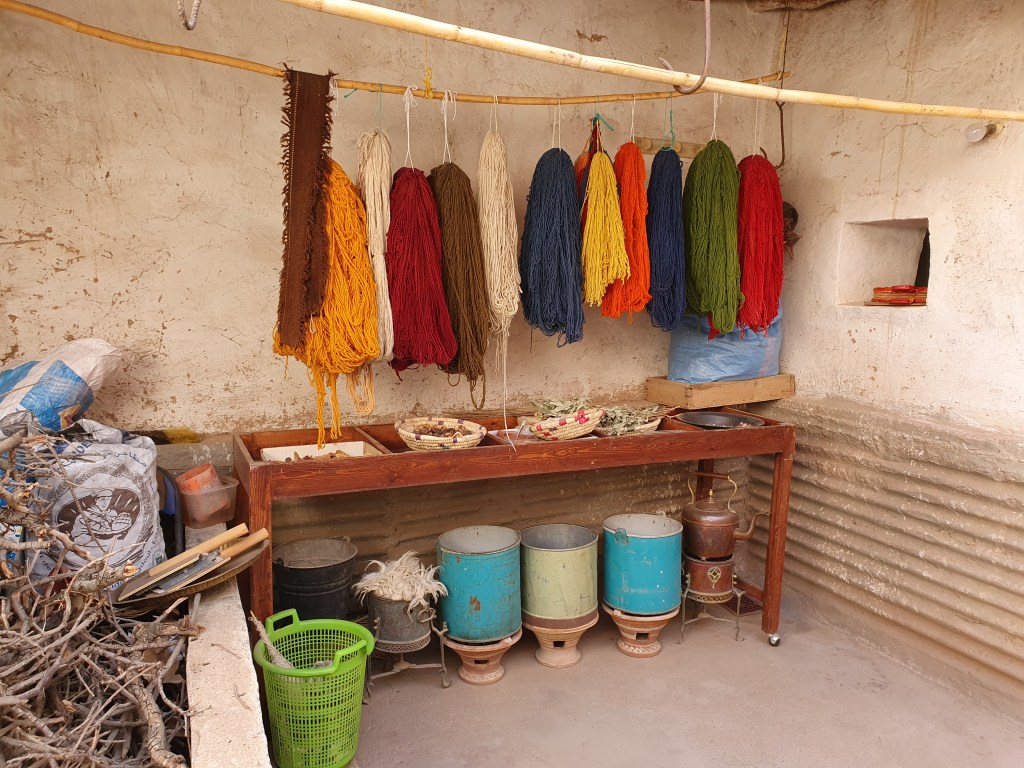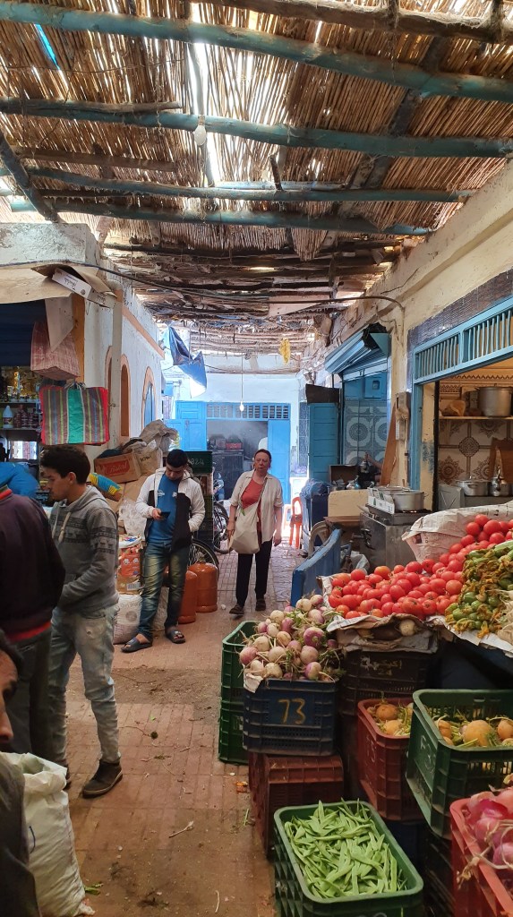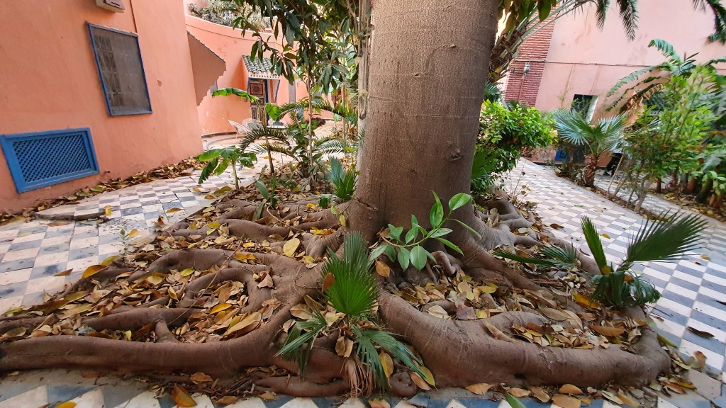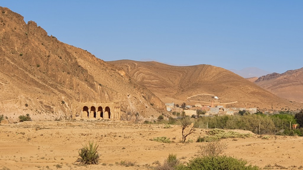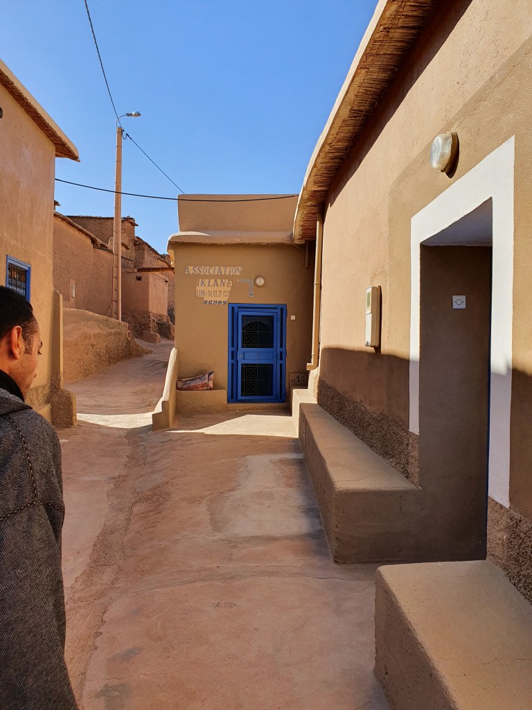 Ouarzazate ist die Filmmetropole von Marokko. Viele große Filme mit Wüstenatmosphäre sind hier entstanden. Gladiator, Laurence von Arabien u.a.. Ouarzazate ist durch die Filmbranche und die Atlas Studios die am schnellsten wachsende Stadt südlich des Atlasgebirges. Von Ouarzazate geht die Straße nach Norden über den Hohen Atlas. Auf der anderen Seite liegt Marrakesch. Es sind 180 km Entfernung aber wir brauchen letztlich 7 Stunden dafür. Die Nationalstraße soll gut ausgebaut sein aber wir hören das sie vor einigen Tagen gesperrt war. Auf unserer Fahrt gibt es andauernd Baustellen und wir fahren viele Kilometer auf Lehmpisten und werden kräftig durchgerüttelt. Es hat wohl Steinlawienen gegeben. Die Leitplanken sind teilweise verbogen oder weggerissen. Die Straße zur Abhangseite weggebrochen. Die Landschaft ist atemberaubend schön und bietet wunderschöne Farben an den Felshängen. Beinahe greifbar sind die Schneefelder auf 2260 m Passhöhe des Tiz’n’Tickla. Gegen Abend erreichen wir das Ourika Camp am Stadtrand von Marrakesch und blicken von unten auf die schneebedeckten Gipfel des Atlas. Fotos sind nicht so viele entstanden und eher in den entspannten Situationen.