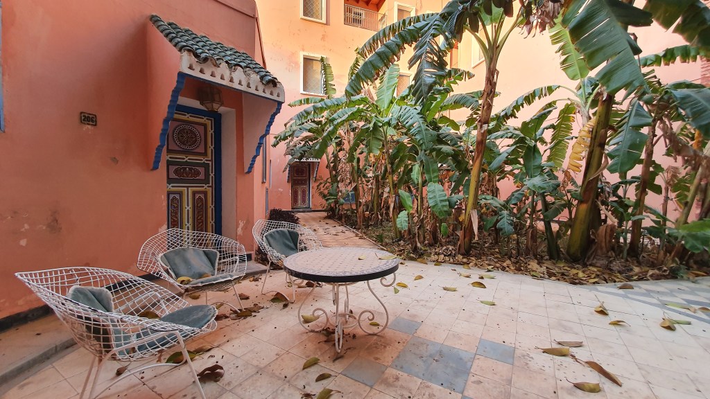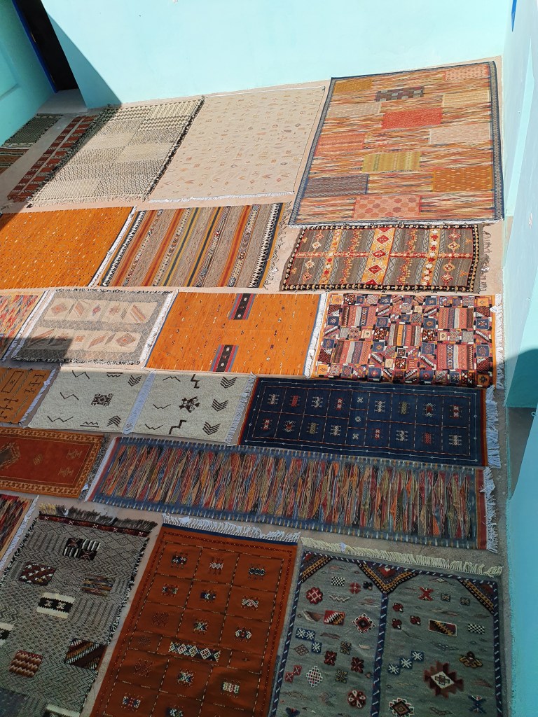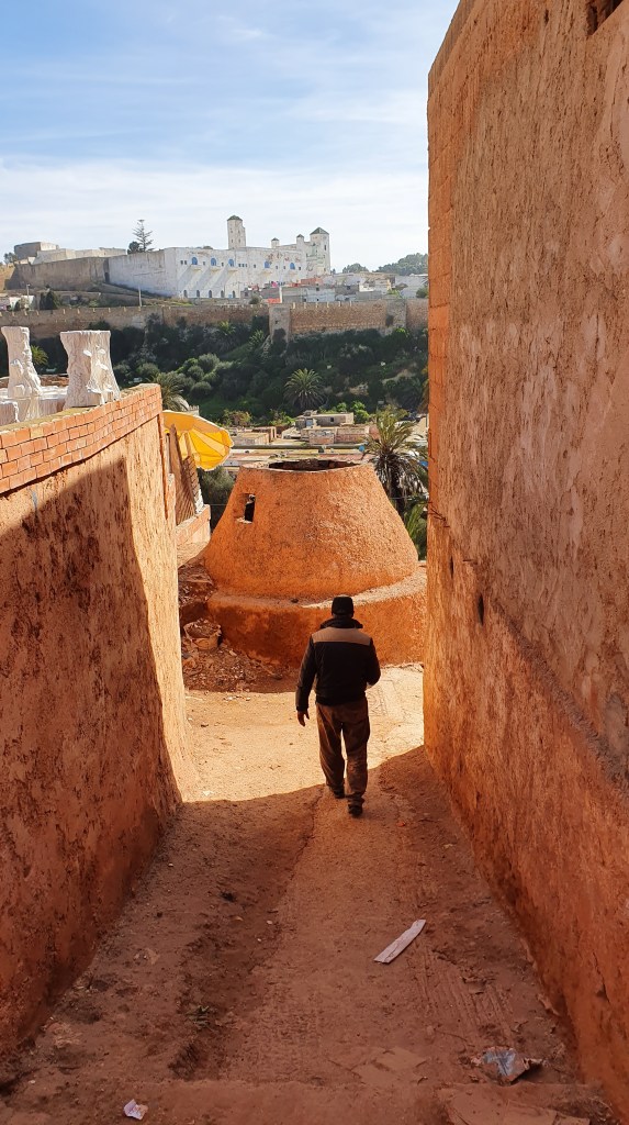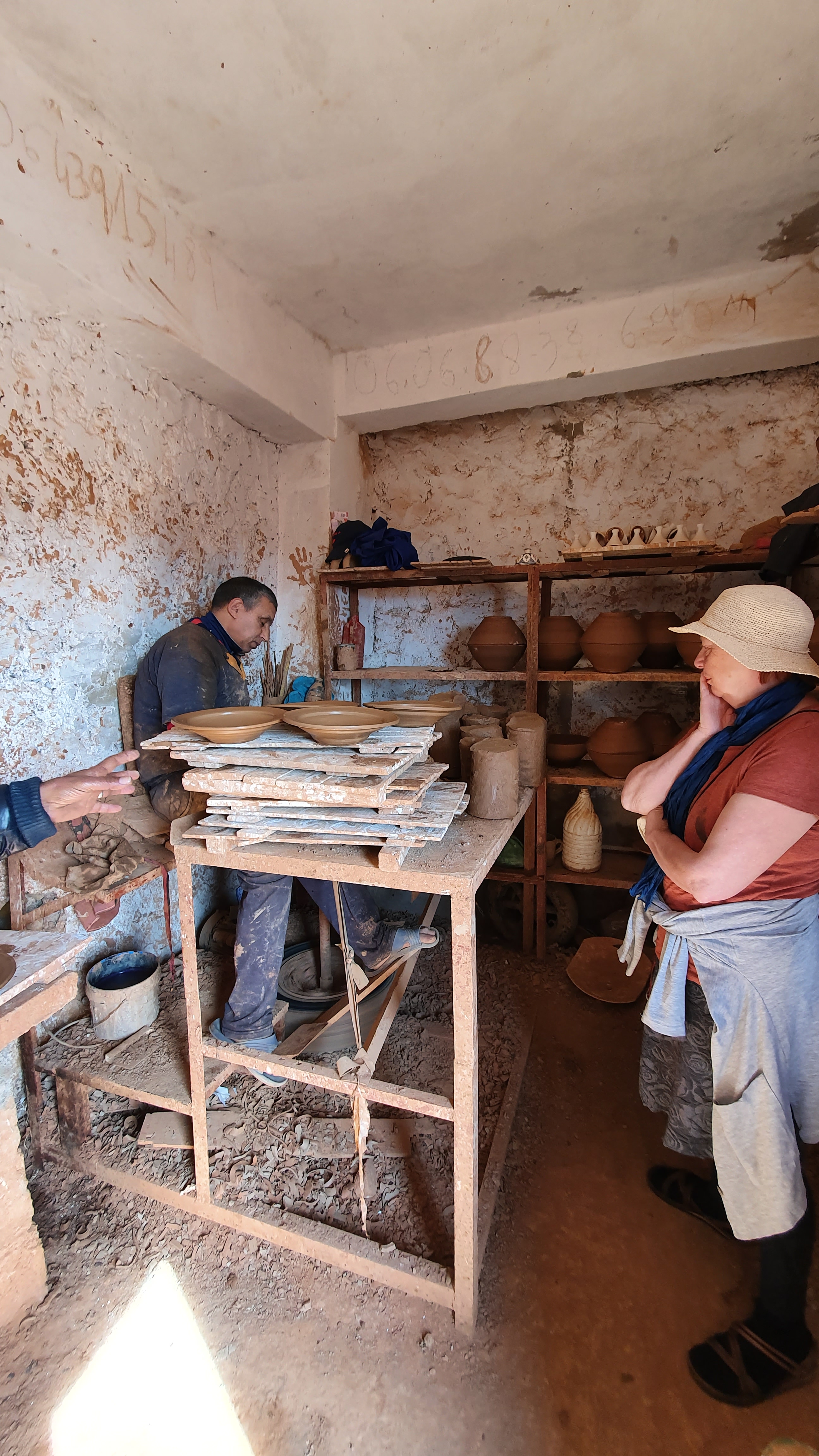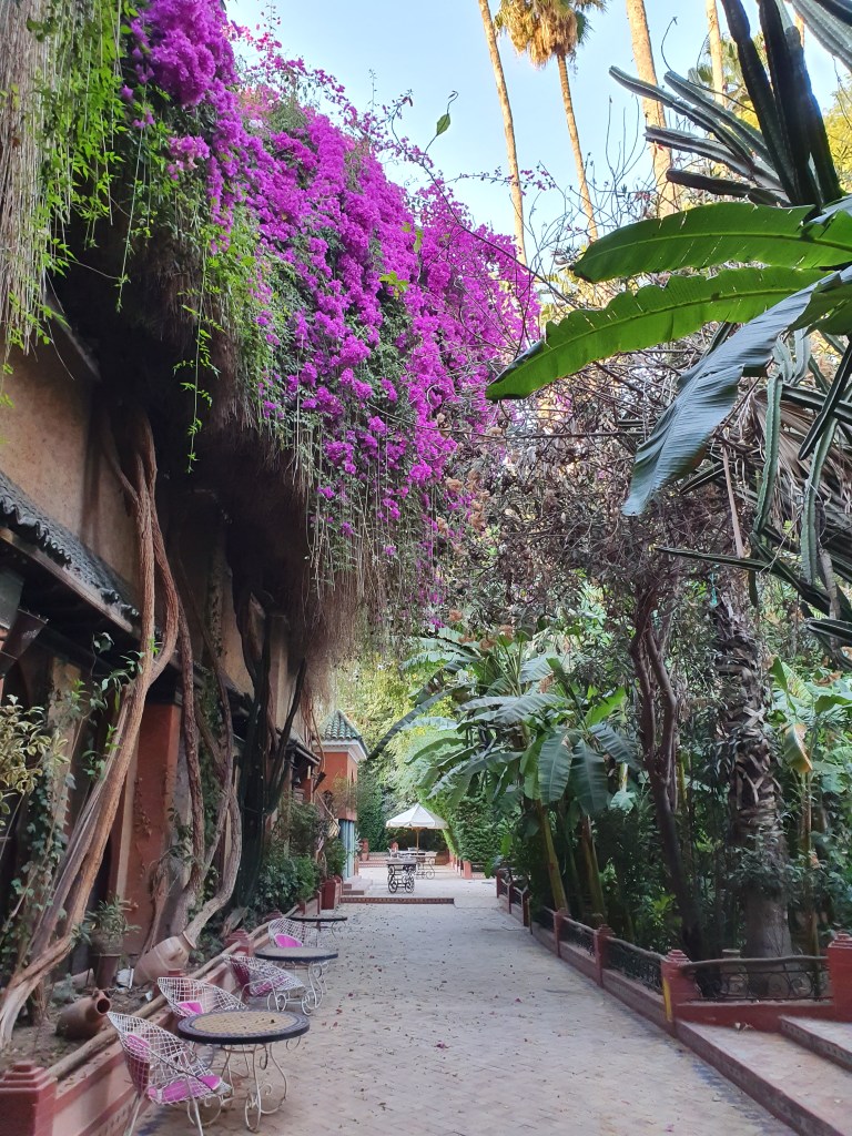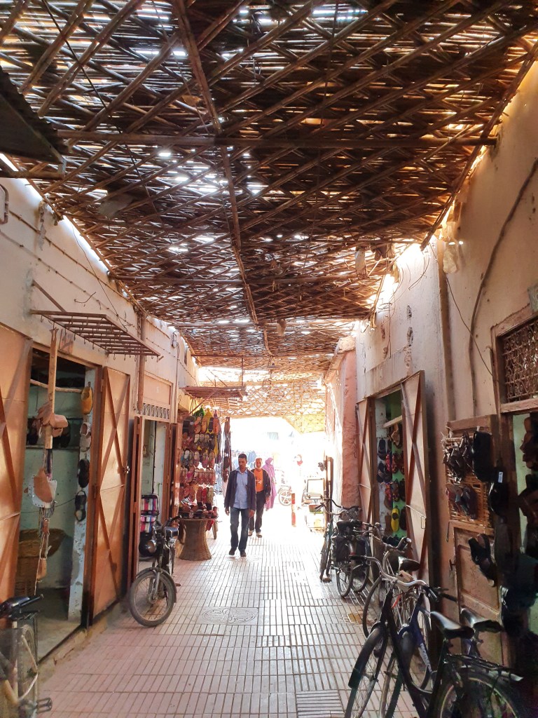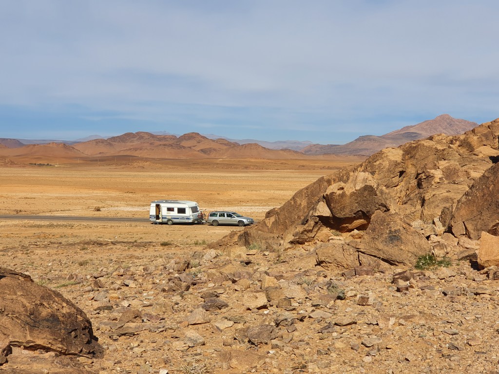 Ouarzazate ist die Filmmetropole von Marokko. Viele große Filme mit Wüstenatmosphäre sind hier entstanden. Gladiator, Laurence von Arabien u.a.. Ouarzazate ist durch die Filmbranche und die Atlas Studios die am schnellsten wachsende Stadt südlich des Atlasgebirges. Von Ouarzazate geht die Straße nach Norden über den Hohen Atlas. Auf der anderen Seite liegt Marrakesch. Es sind 180 km Entfernung aber wir brauchen letztlich 7 Stunden dafür. Die Nationalstraße soll gut ausgebaut sein aber wir hören das sie vor einigen Tagen gesperrt war. Auf unserer Fahrt gibt es andauernd Baustellen und wir fahren viele Kilometer auf Lehmpisten und werden kräftig durchgerüttelt. Es hat wohl Steinlawienen gegeben. Die Leitplanken sind teilweise verbogen oder weggerissen. Die Straße zur Abhangseite weggebrochen. Die Landschaft ist atemberaubend schön und bietet wunderschöne Farben an den Felshängen. Beinahe greifbar sind die Schneefelder auf 2260 m Passhöhe des Tiz’n’Tickla. Gegen Abend erreichen wir das Ourika Camp am Stadtrand von Marrakesch und blicken von unten auf die schneebedeckten Gipfel des Atlas. Fotos sind nicht so viele entstanden und eher in den entspannten Situationen.