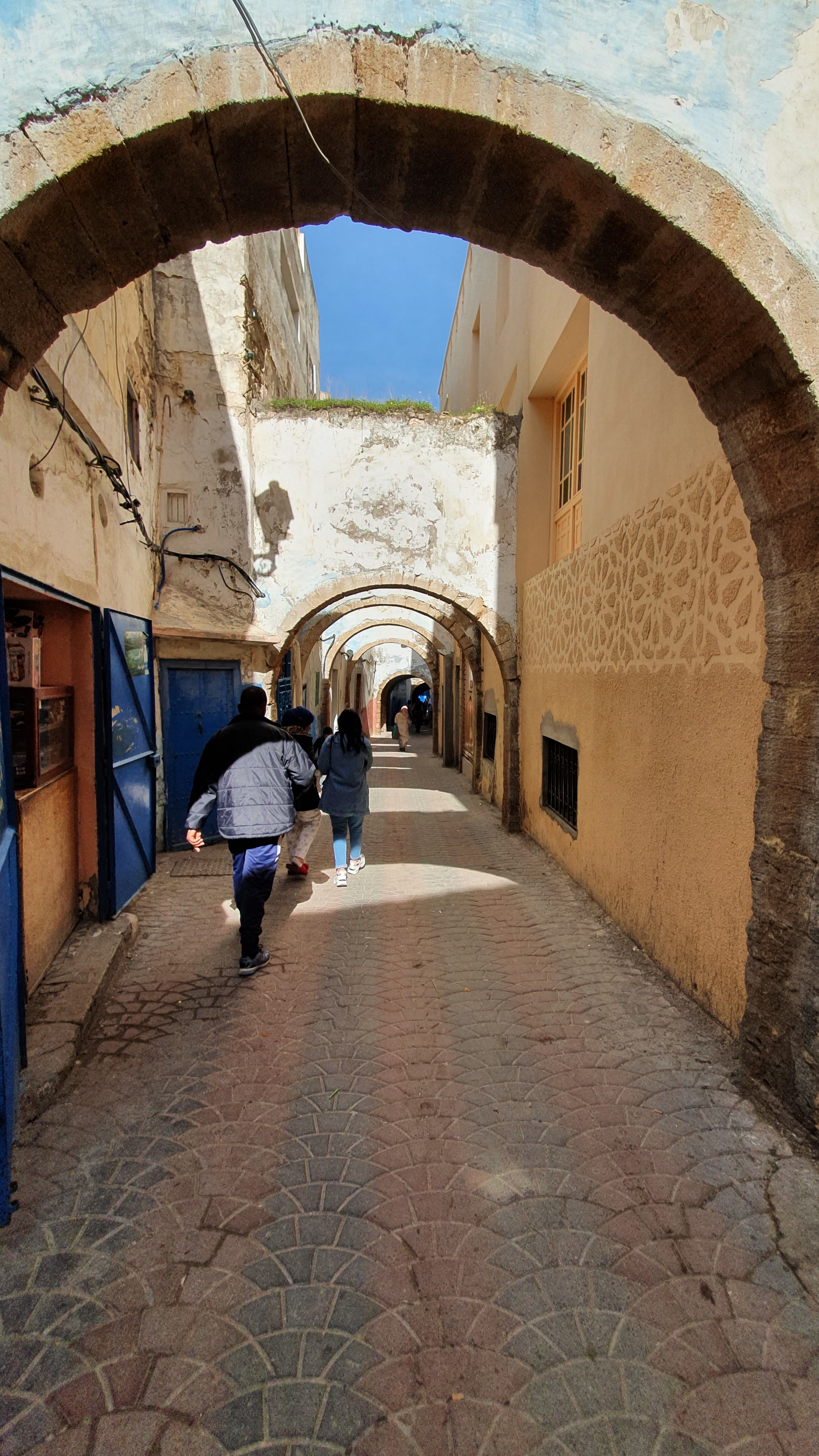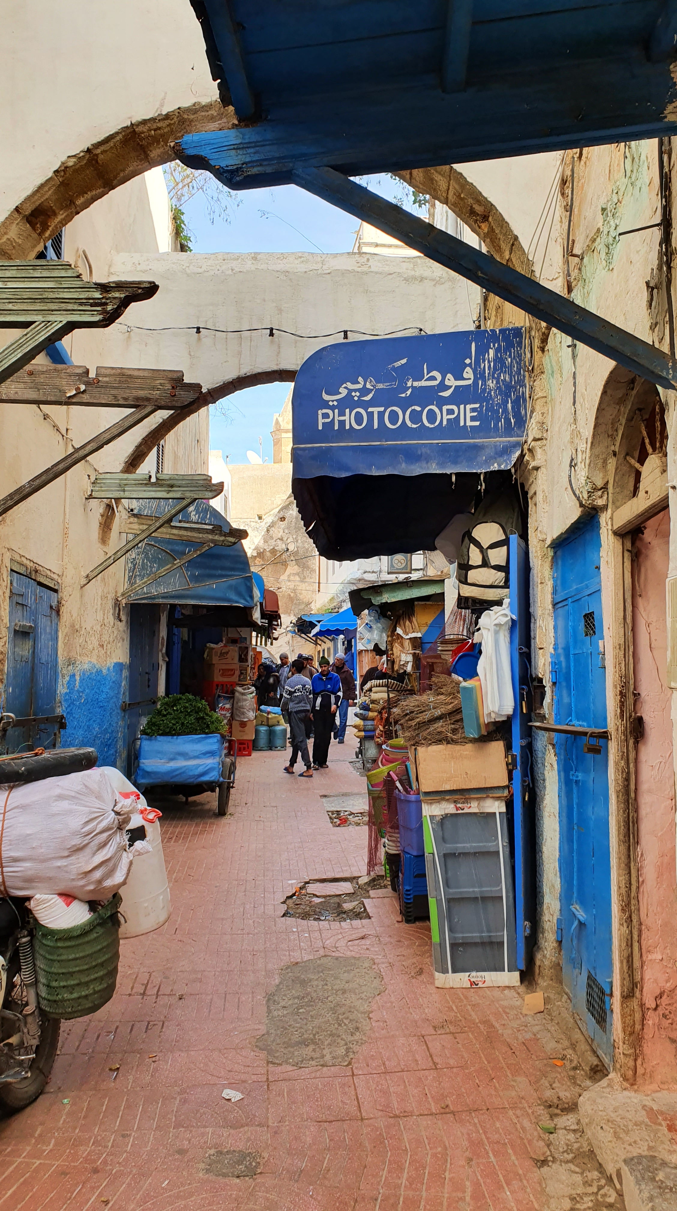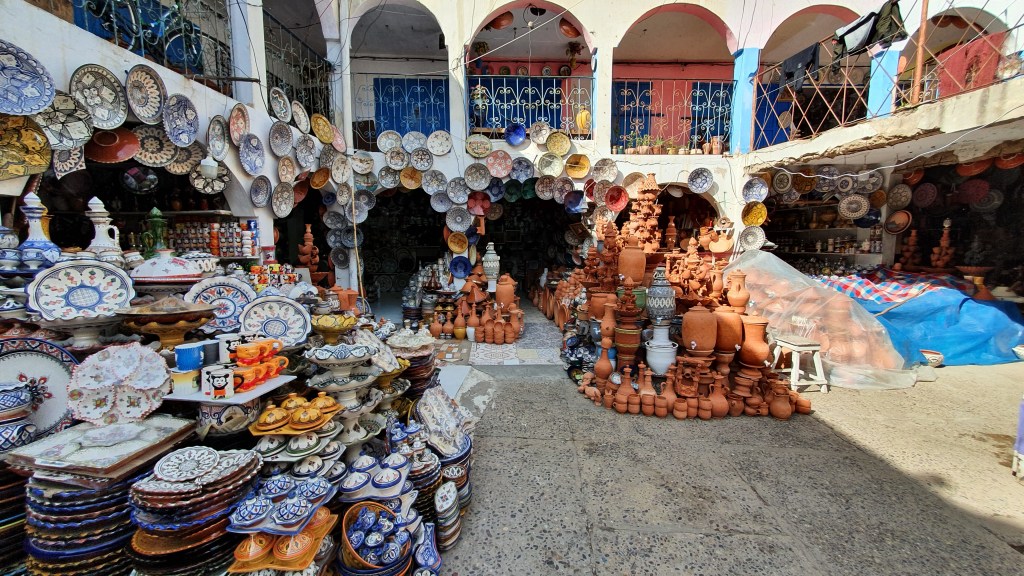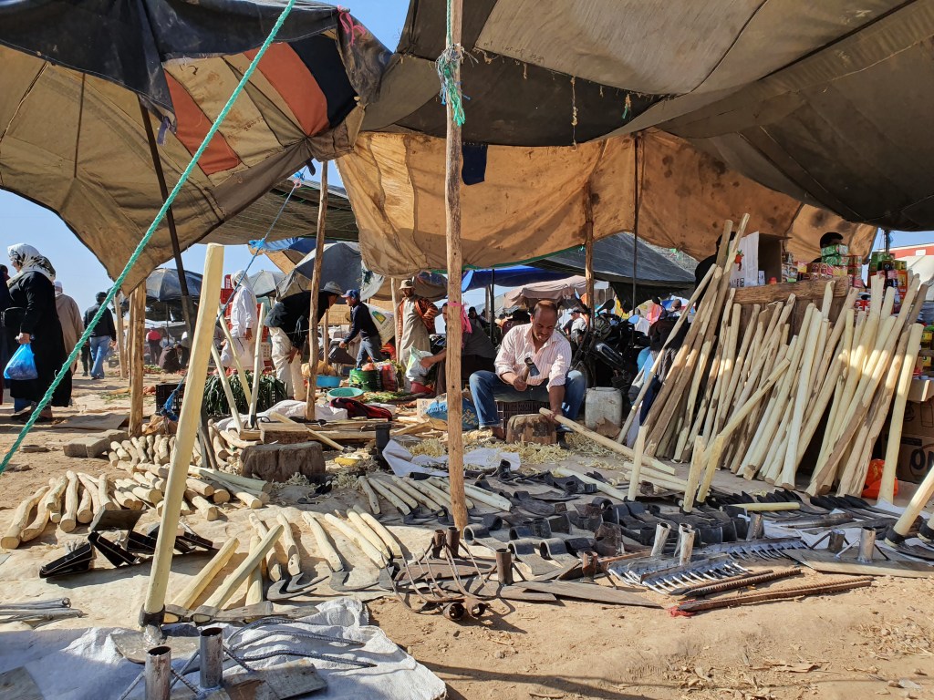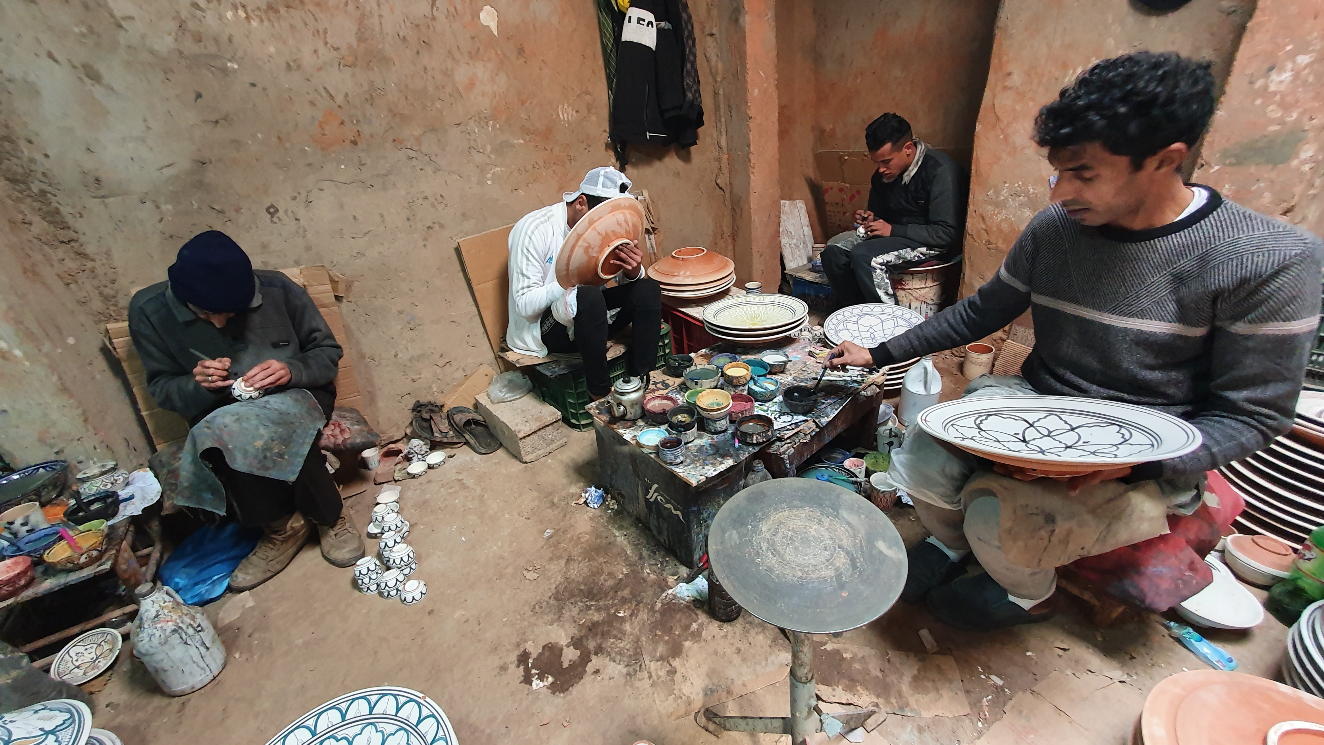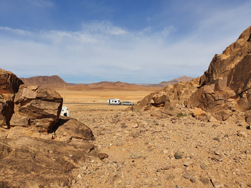 Ouarzazate ist die Filmmetropole von Marokko. Viele große Filme mit Wüstenatmosphäre sind hier entstanden. Gladiator, Laurence von Arabien u.a.. Ouarzazate ist durch die Filmbranche und die Atlas Studios die am schnellsten wachsende Stadt südlich des Atlasgebirges. Von Ouarzazate geht die Straße nach Norden über den Hohen Atlas. Auf der anderen Seite liegt Marrakesch. Es sind 180 km Entfernung aber wir brauchen letztlich 7 Stunden dafür. Die Nationalstraße soll gut ausgebaut sein aber wir hören das sie vor einigen Tagen gesperrt war. Auf unserer Fahrt gibt es andauernd Baustellen und wir fahren viele Kilometer auf Lehmpisten und werden kräftig durchgerüttelt. Es hat wohl Steinlawienen gegeben. Die Leitplanken sind teilweise verbogen oder weggerissen. Die Straße zur Abhangseite weggebrochen. Die Landschaft ist atemberaubend schön und bietet wunderschöne Farben an den Felshängen. Beinahe greifbar sind die Schneefelder auf 2260 m Passhöhe des Tiz’n’Tickla. Gegen Abend erreichen wir das Ourika Camp am Stadtrand von Marrakesch und blicken von unten auf die schneebedeckten Gipfel des Atlas. Fotos sind nicht so viele entstanden und eher in den entspannten Situationen.