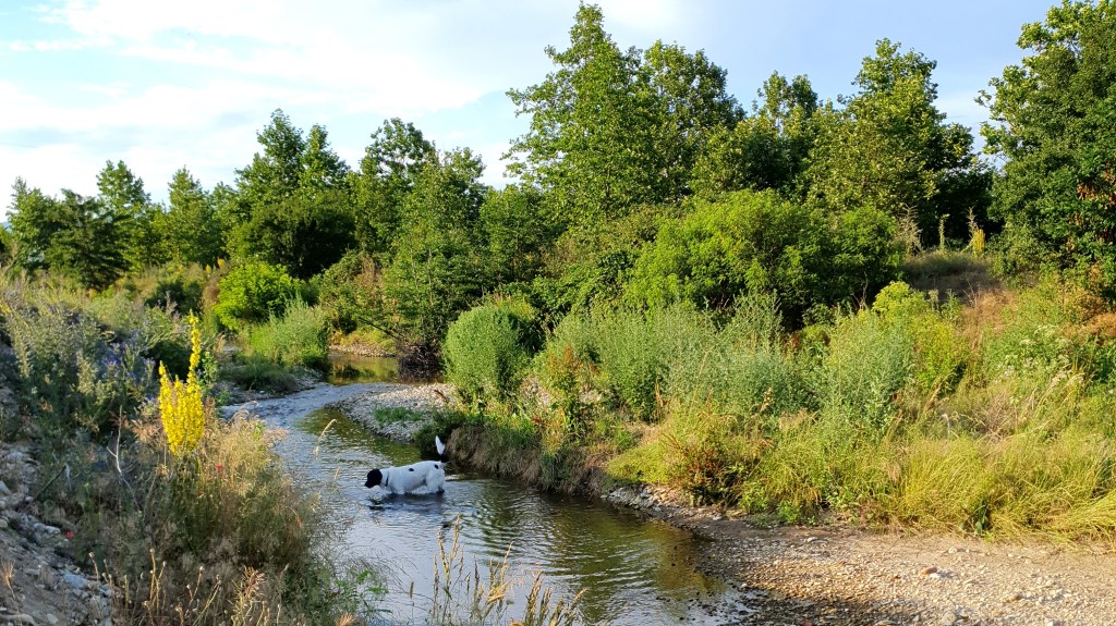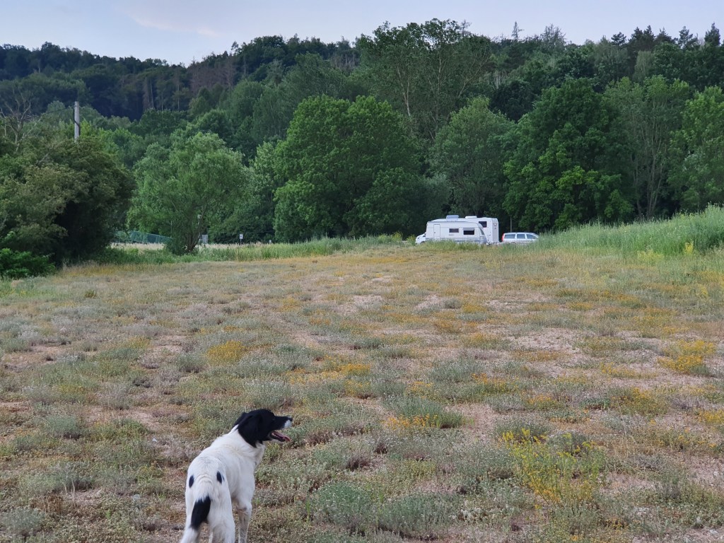Von Seuthes hat man eine Bronzebüste gefunden wie sie auch auf den Münzen seiner Zeit abgebildet waren. Auf ihn geht auch die damalige Siedlung Seuthepolis zurück. Sie war das zivilisatorische Zentrum im thrakischen Tal hier am Fuß des Balkanmassivs. Die Stadt und die umgebenden Tempel und Grabhügel zwischen den Bergen muss ein atemberaubend schöner Lebensraum gewesen sein. Die Antike Stadt ist nun einem anderen Interesse einer neuen Zeit zum Opfer gefallen. Der Energiegewinnung und modernen Wasserversorgung. Die Reste der antiken Siedlung liegen unweit unseres Stellplatzes auf dem Grund des Stausees Koprinka. Das Wasser der Tundscha erfrischt tagsüber Merlin beim Gassi gehen.