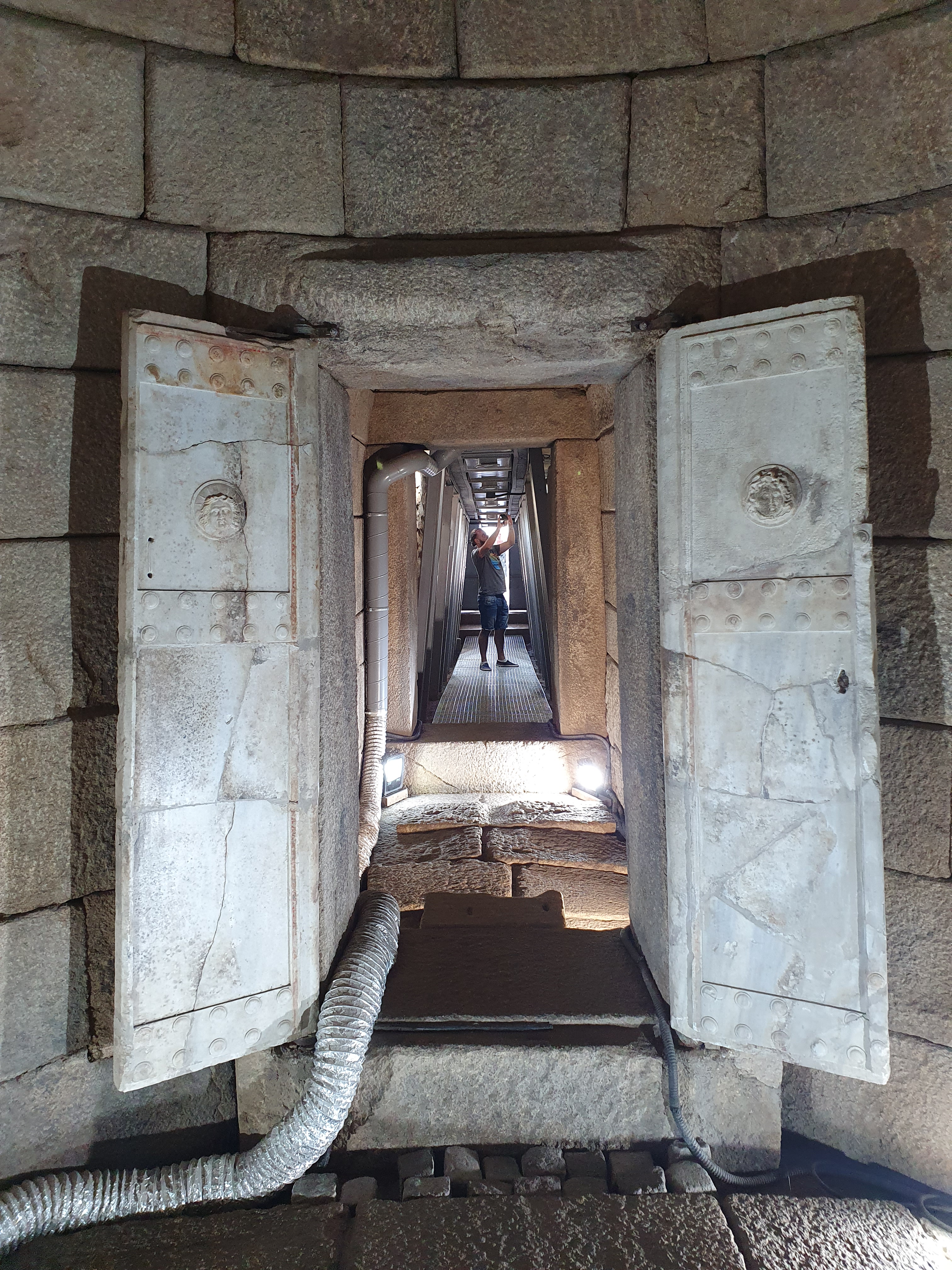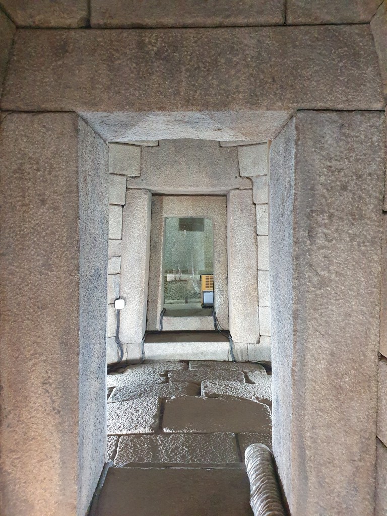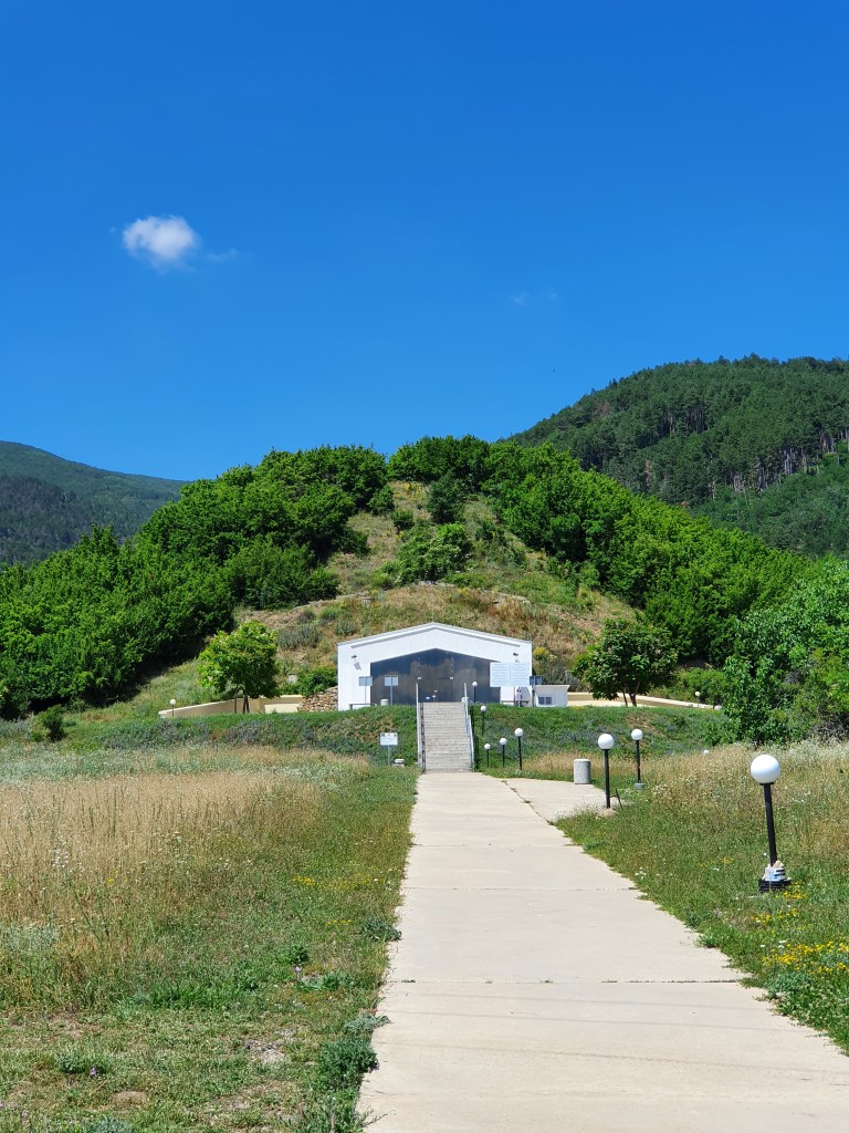 Ich kann mich nicht erinnern schon damals vom Tal der thrakischen Könige gehört zu haben.? Und tatsächlich ist die Erschließung der Grabanlagen noch recht jung. Die Archäologen haben in Bulgarien den Wettlauf mit den Grabräubern an vielen Stellen verloren. Viele Hügelgräber wurden mit Bulldozern aufgegraben und geplündert. Das Grab in dem angeblich der Thrakier König Seuthes III begraben lag haben wir heute besuchen können. Außerdem drei Weitere die wissenschaftlich untersucht und gesichert werden konnten. Die Öffnungen zu den Kulträumen waren exakt nach Süden ausgerichtet und es gibt Hinweise das zur Sonnwende das Licht auf besondere Weise ins Innere dringen konnte. Besonders zur Wintersonnwende bei flach stehender Sonne ist das gut vorstellbar. Uns erinnert das an die Besuche von Newgrange und den Hügelgräbern in Irland. Die Tempel und Kulträume wurden wohl zur Bestattung besonderer Persönlichkeiten als Grabkammern genutzt und nach einiger Zeit mit Erde verschlossen. So entstanden perfekte Hügel in der Landschaft, die die Zeiten überdauerten bis Archäologen oder Grabräuber einer neuen Zeit anrückten um nachzusehen sehen was da los ist.