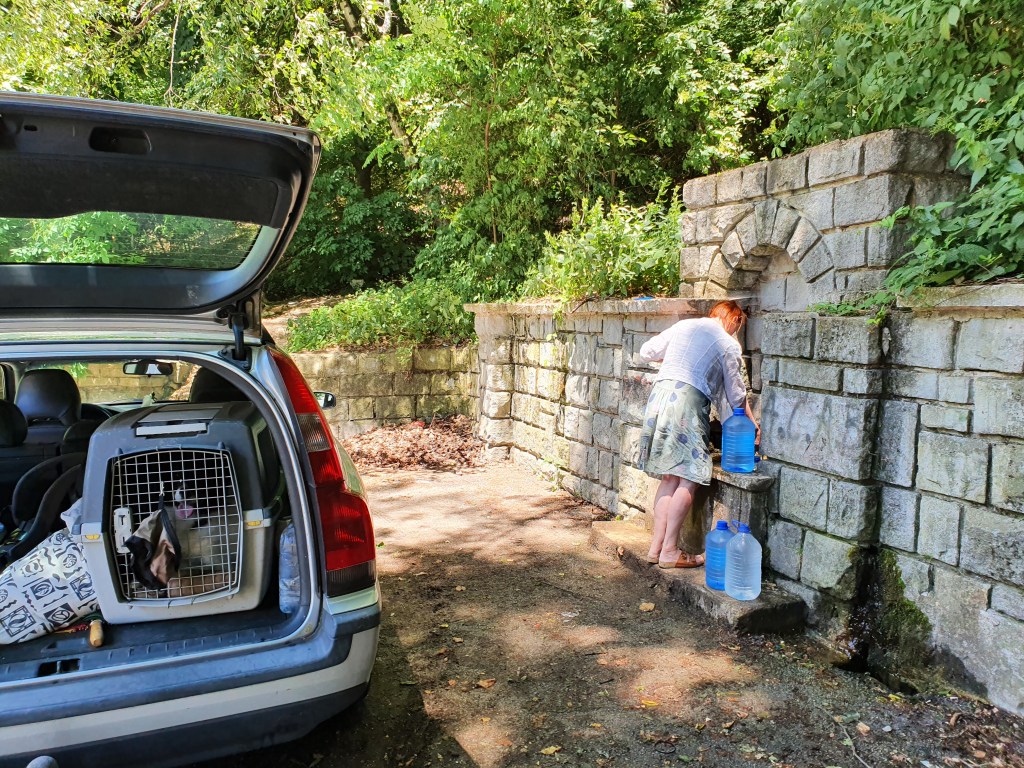 Das Thermalwasser auf unserem Platz ist nicht zum Trinken geeignet. Hier gibt es viele Bergquellen. Nach unserem Besuch der russischen Kirche in Shipka fahren wir ein Stück in die Berge Richtung Shipka Pass. An der Quelle erinnern wir uns das wir hier schon damals unsern Wassertank am Bus aufgefüllt haben. Eine schöne und überraschende Erinnerung. Ein Ort der sich nicht verändert hat. Heute tanken wir unsere Trinkwasser Behälter mit dem eiskalten Wasser des „alten Gebirges“ wie es in Bulgarien heißt.